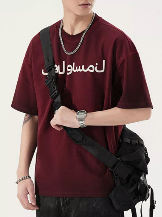 Men's Full Size Arabic Letter Oversized T-Shirt Plus Size