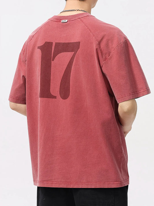 Men's Plus Size Vintage Washed Number 17 Oversized T-Shirt