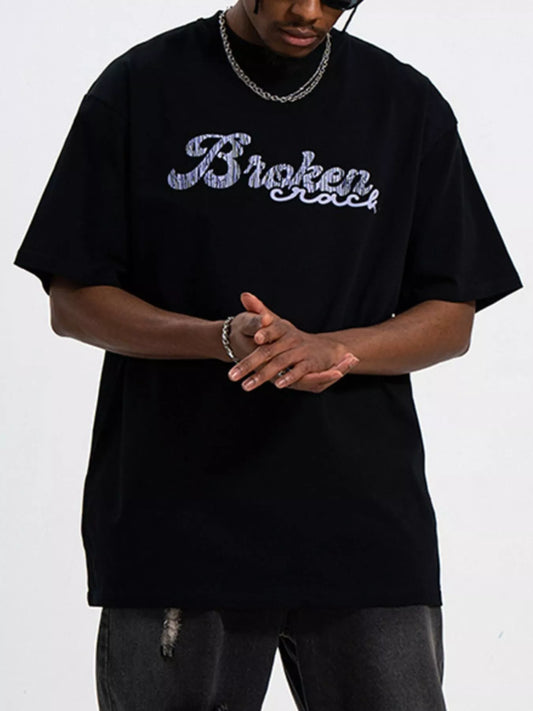 Men's Full Size Letter Round Neck Short Sleeve T-Shirt Plus Size