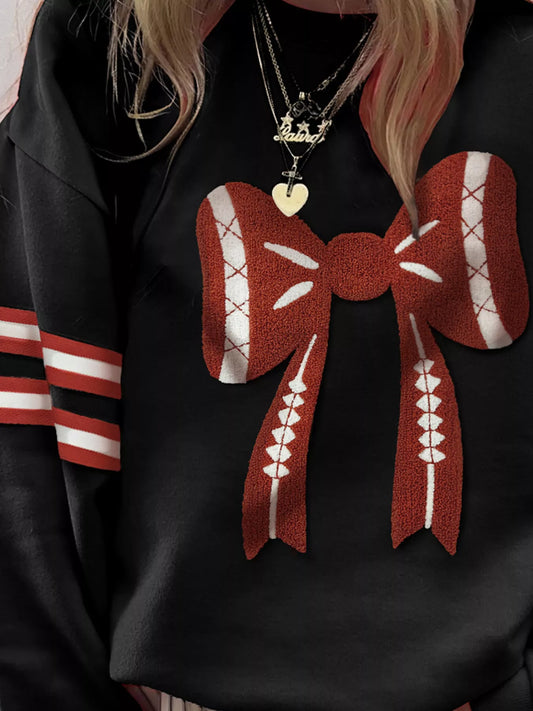 Leopard Ruffle Detail Ribbed Trim Round Neck Sweatshirt