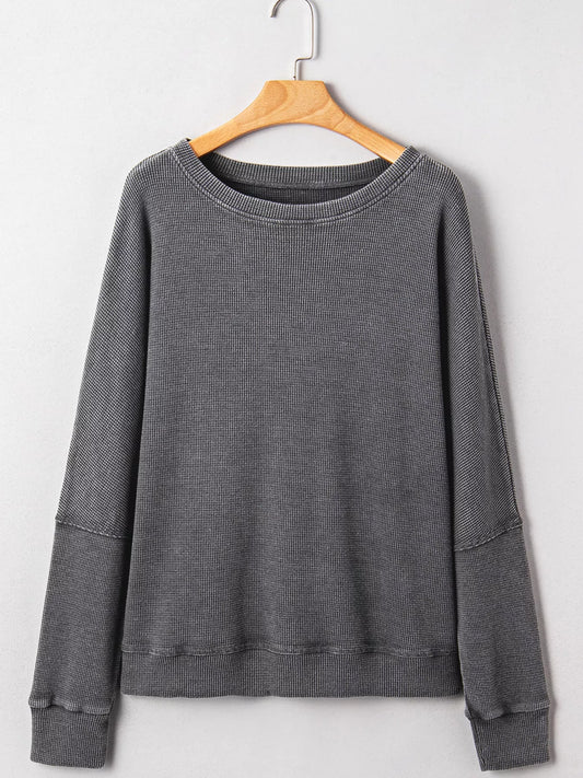Waffle Knit Patchwork Long Sleeve Loose Sweatshirt