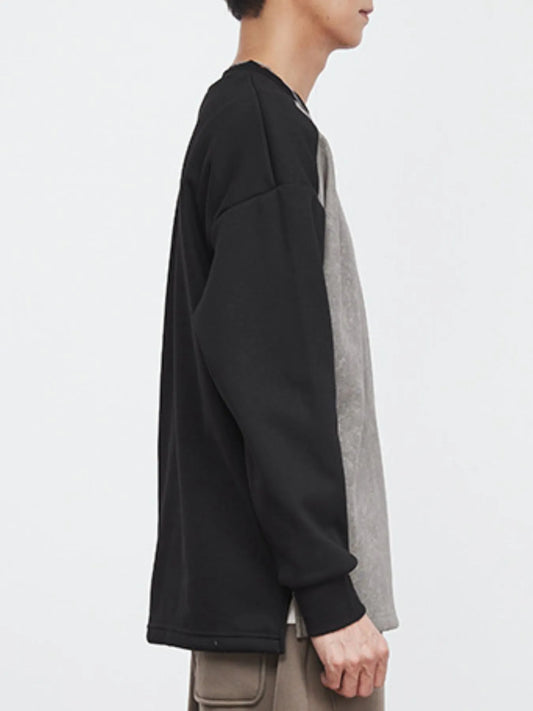 Men's Plus Size Contrast Round Neck Long Sleeve Sweatshirt
