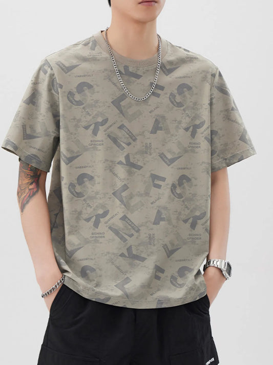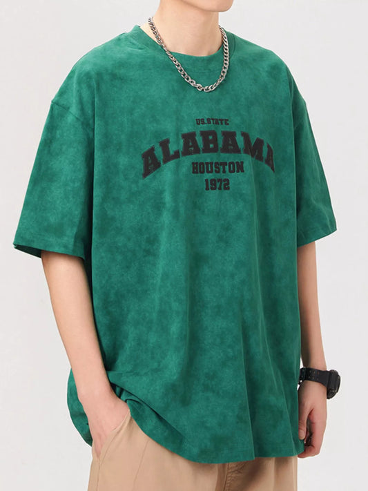 Men's Plus Size Letter Round Neck Short Sleeve T-Shirt