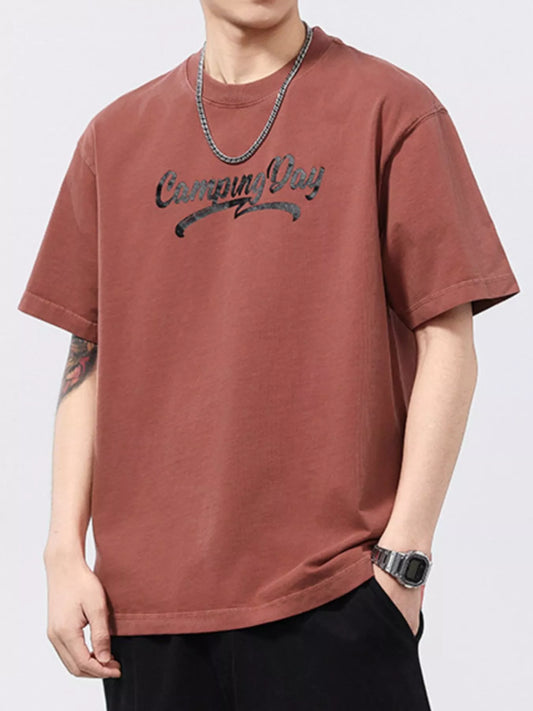 Men's Plus Size Letter Round Neck Half Sleeve T-Shirt
