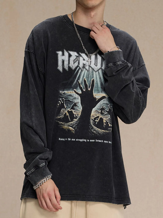 Men's Graphic Round Neck Long Sleeve T-Shirt